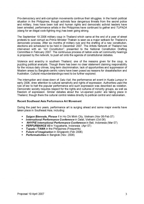 Performer lance its slippers on the lines, begins to walk on them, slowly, puts a slipper in the foot and the other in the hand until arriving at the end of the lines, jumps 180º, it returns to jump and slowly it retires the left foot of the line and the projector is extinguished.