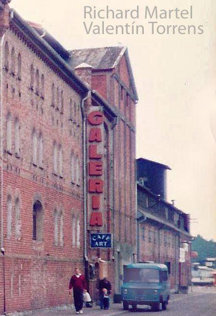 The space is square with two lines of wooden pillars. The audience is sitting on either side of the room.