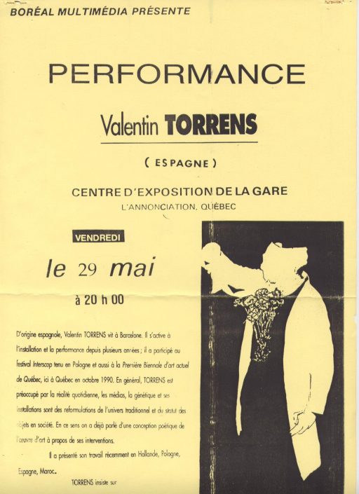 The performer places his naked arm on the TV screen, tattooing on his skin some “signs of power” such as ties, crowns, trade logos, etc. In the opposite side of the place another TV is turned on. With some chewed gums sticked on the screen, he glues some other new chewing gum balls. The audience is also chewing gum that they are told to take out of their mouths to make a string of gum and link it with their neighbor’s chewed gum and the whole string of gum is linked the TV screens.