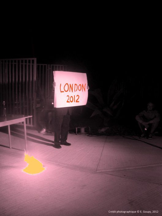 Turn on the gasoline of the ashtray and unwind a poster: LONDON 2012.