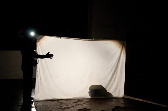 Hang up the sheet. The performer is situated behind.
