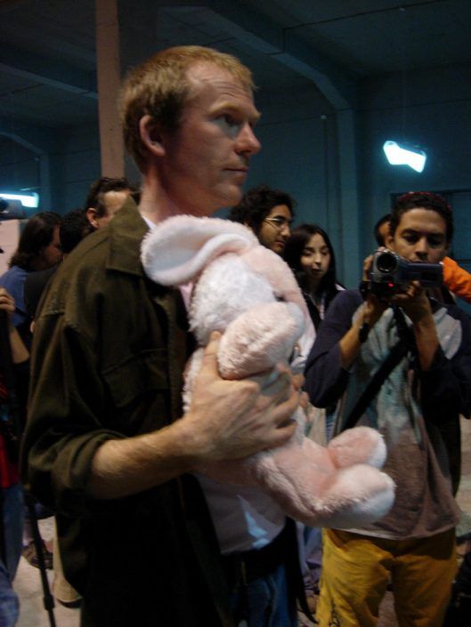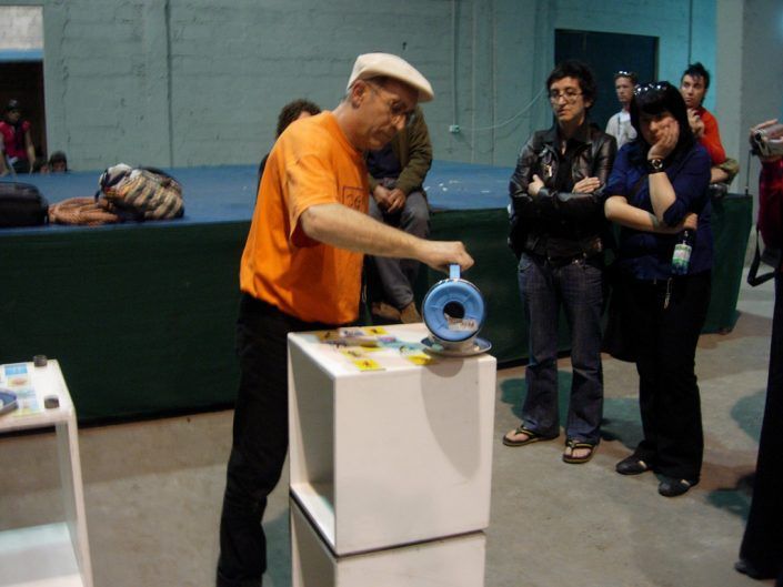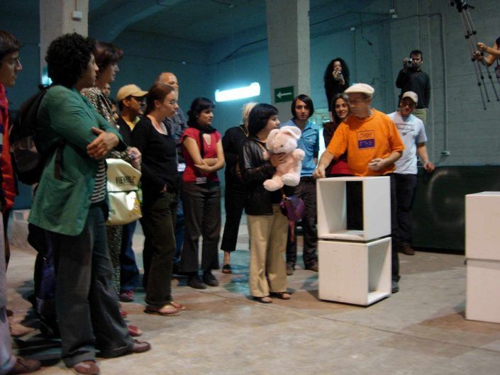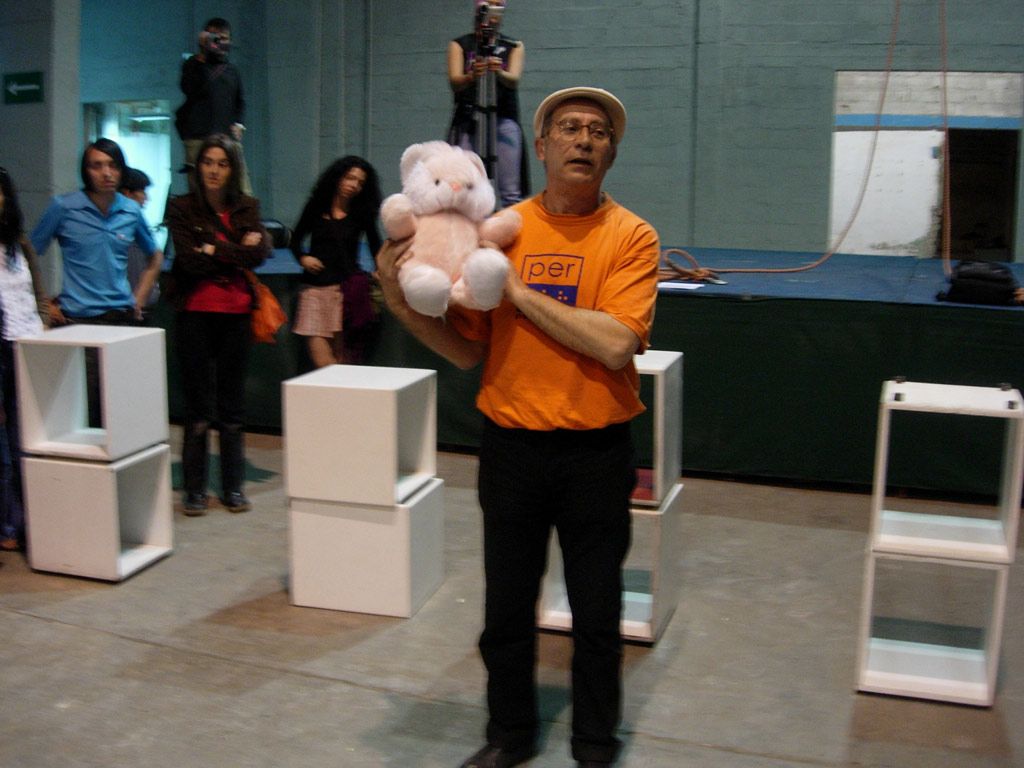 The performer takes a plush rabbit: He introduces it to the public as a descendant of the hare to which St. Joseph Beuys explained the meaning of art.