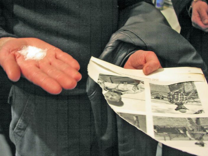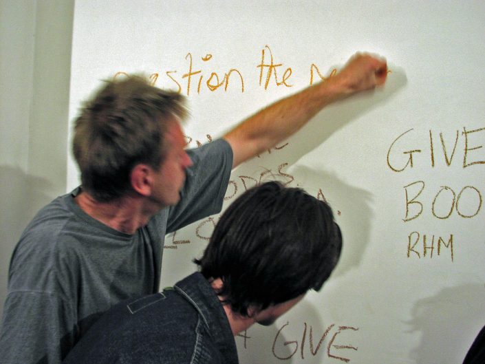 With his hands the performer hits the wall, delimit a rectangle that will be the one of the projection